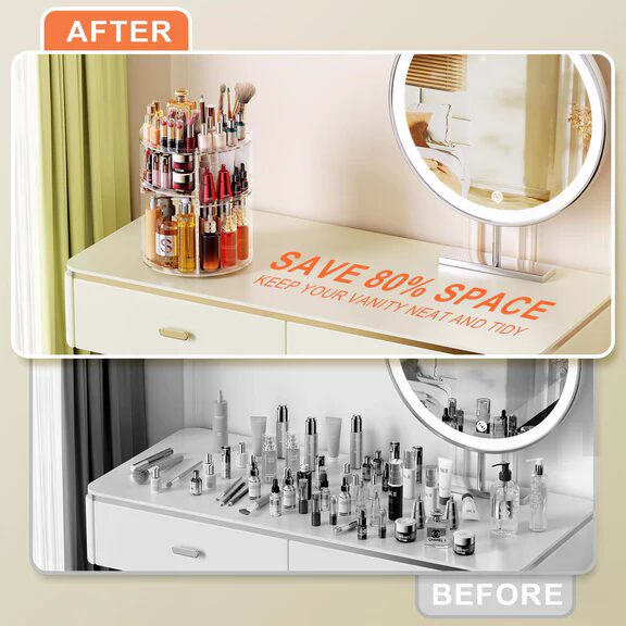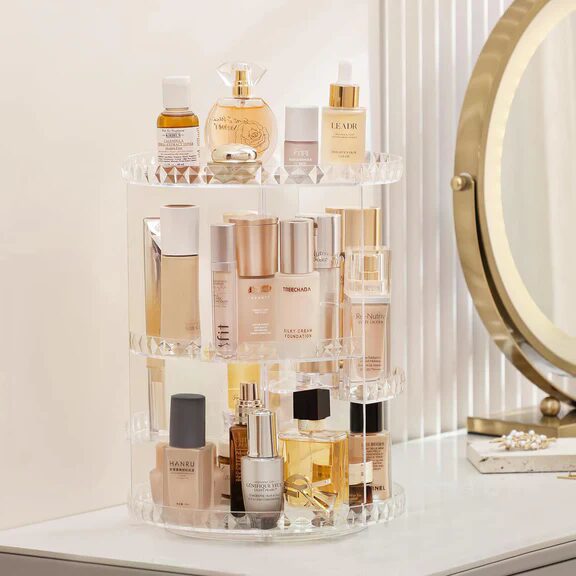 Upgrade your vanity with this 360° Rotating Skincare Organizer, designed to combine luxury, convenience, and smart storage in one elegant solution.