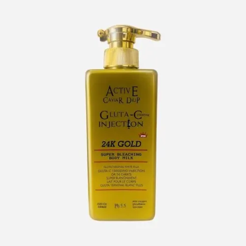 Unveil a brighter, more radiant you with Active Caviar Drip Gluta-C Injection Gold Body Milk. This premium body lotion is enriched with 150,000MG of Glutathione, caviar extract, and an innovative super lightening complex designed to fade dark spots, brighten uneven skin tone, and give your skin a clear, glowing finish. It targets pigmentation and dullness at the cellular level, helping you achieve a smooth, radiant, and uniform complexion.