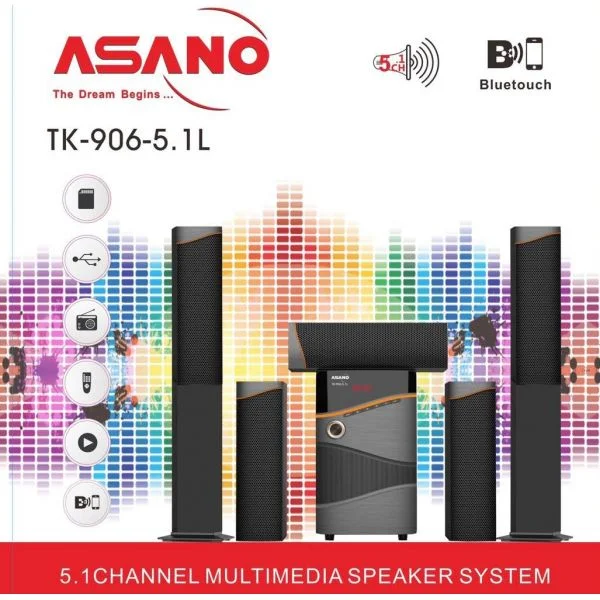 Introducing the TK-906 5.1L Bluetooth speaker, the ultimate audio companion for music enthusiasts in Ghana. This powerful speaker is designed to provide a remarkable sound experience, ensuring you enjoy your favorite tunes to the fullest. Specifications: Model: TK-906 5.1L Bluetooth Version: V4.2 Output Power: 5W2 + 15W1 Music Playing Time: 3 hours Speaker Size: 79mm Battery: 2000mAh When it comes to audio quality, the TK-906 5.1L stands out. With its high-power 5.1 audio system, this speaker offers a level of sound clarity and depth that will transform your music listening experience. Whether you’re hosting a party, enjoying a movie night, … Asano Tk 906 5.1 is now available in our store. Check out the details below! Buy now on Ololo Express