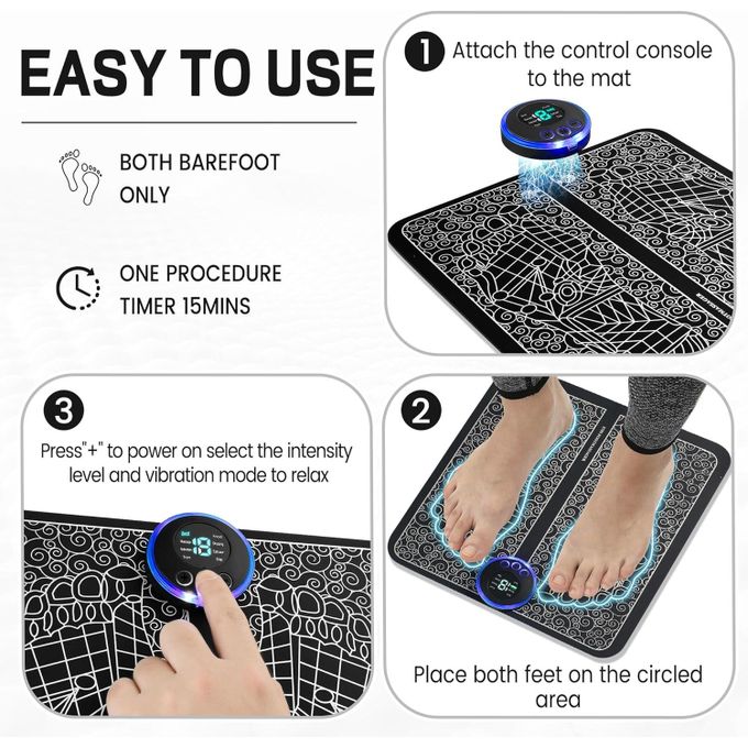 The Electrical Muscle Stimulation Foot Massager delivers targeted relief for tired, aching, and stressed feet.