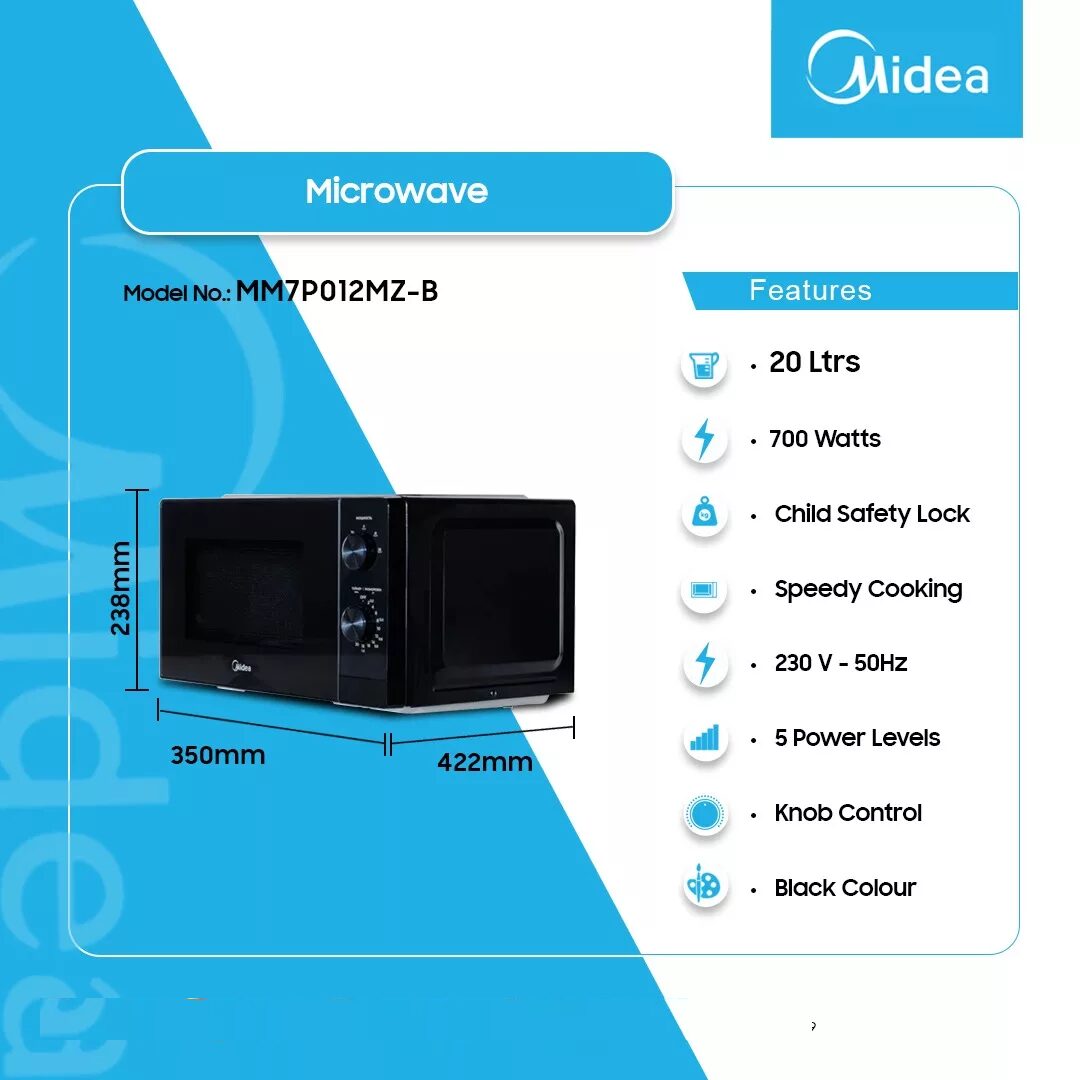 Midea 20ltr Microwave Solo Mm7p012mz B is now available in our store. Check out the details below!
