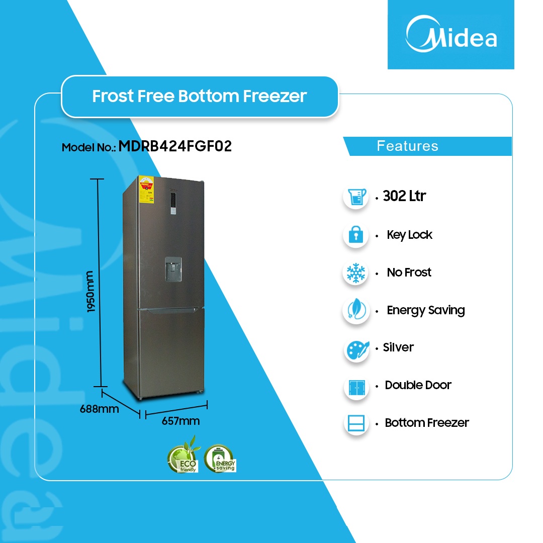 Midea 302ltr Double Door Bottom Freezer 4 Stars Mdrb424fgf02 is now available in our store. Check out the details below!