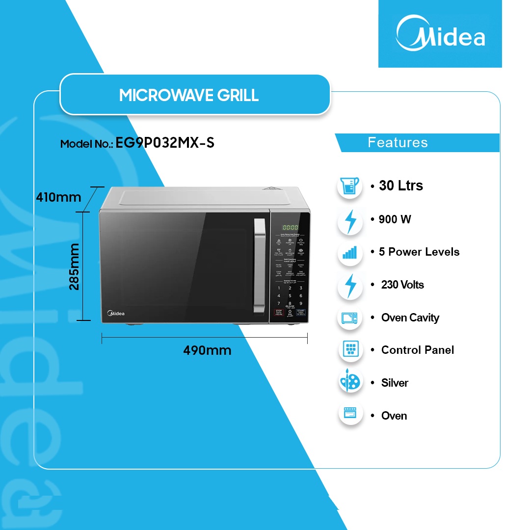 Midea 30ltr 900w Grill Microwave With Oven Em9p032mx S is now available in our store. Check out the details below!