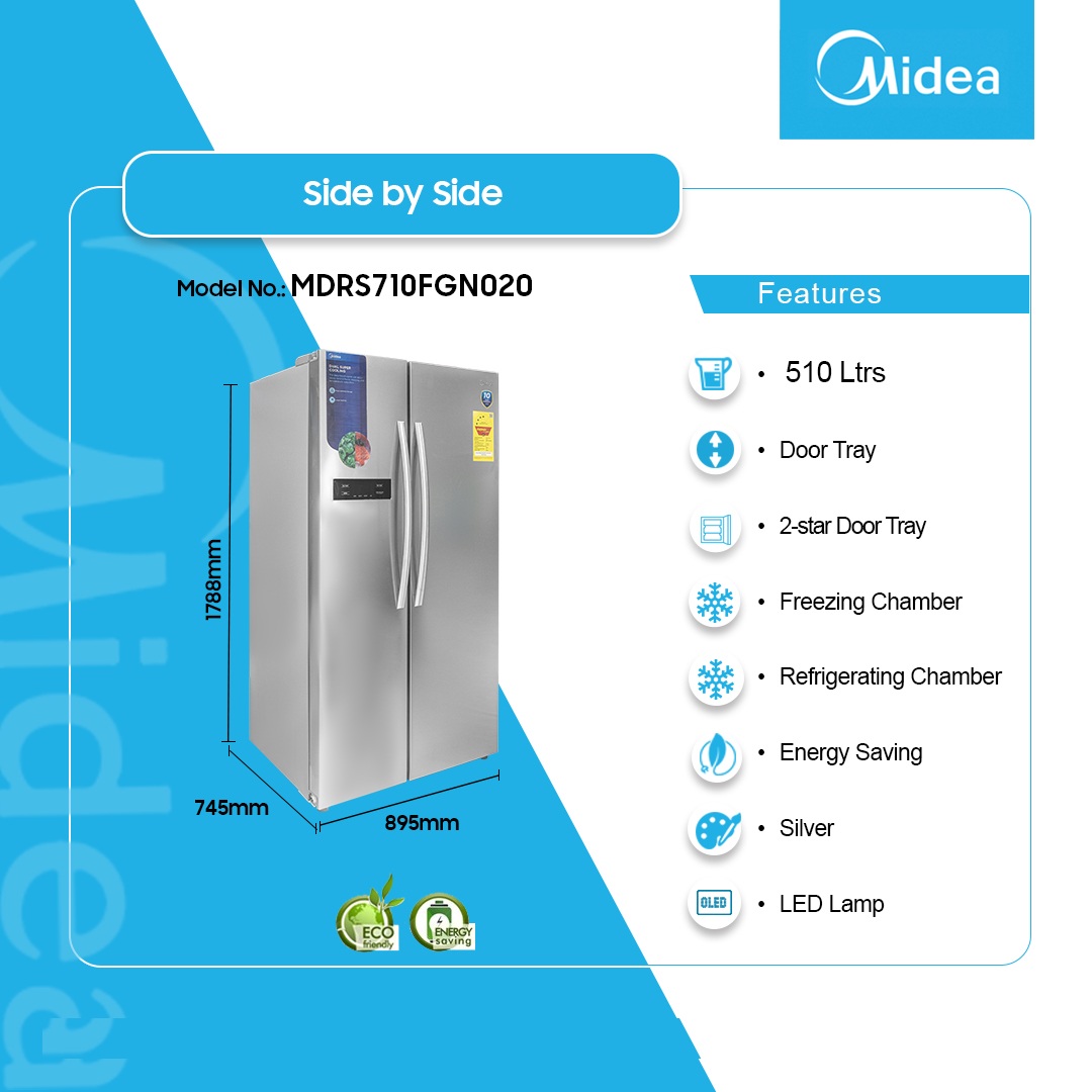 Midea 510 Ltr Side By Side Refrigerator Mdrs710fgn02d is now available in our store. Check out the details below!