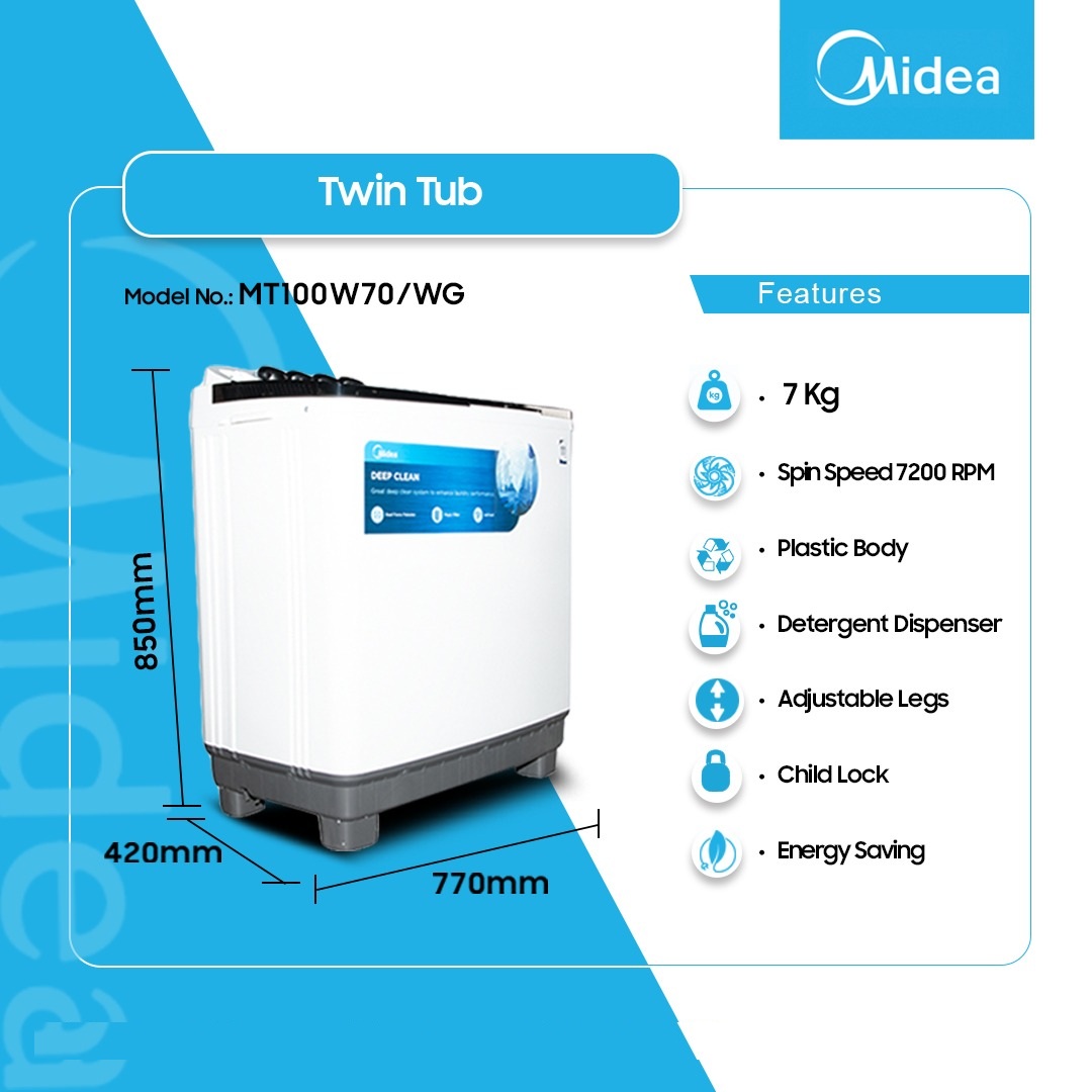 Midea 7kg Twin Top Washing Machine Mt100w70/Wg is now available in our store. Check out the details below!