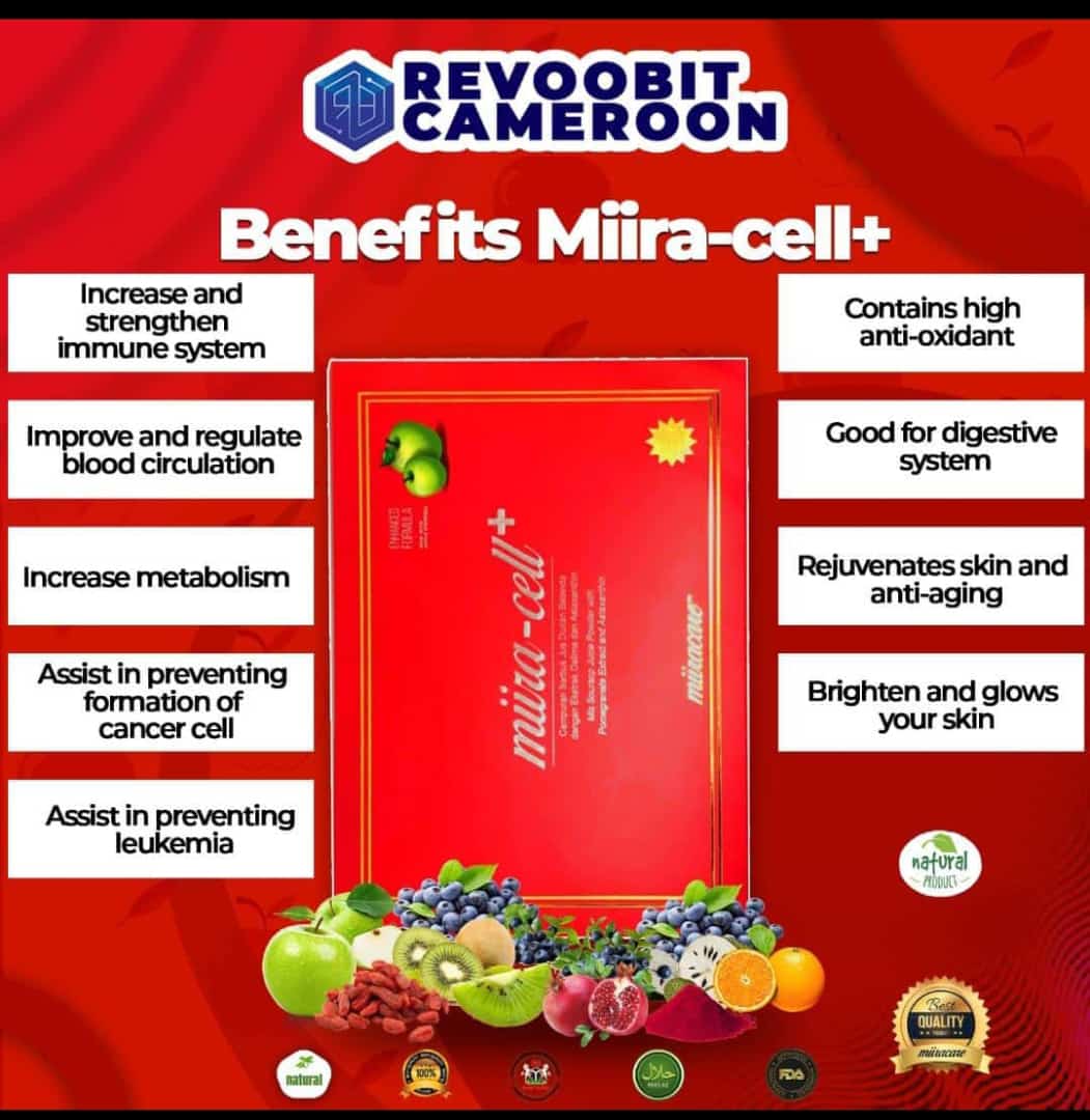 Miira-Cell: Advance Stem Cell for Reviving Failing Health Miiracell+ is a stem cell product, super nutrient, and organic product that rejuvenates, replicates, restores, replaces, repairs, cleanses, and brings the body into normal functionality. It works on a cellular level, it has the ability to enter into any tissue in the body, repair damaged cells, activate dormant cells, and regenerate new cells. As the cells get back to normal functionality they start to fight any disease/ sickness or virus regardless of its name or incurable it is out of your body. Miira-Cell Plus is a plant-based food therapy ahead of its