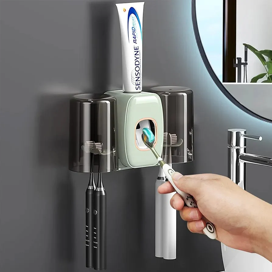 This toothbrush holder is wall-mounted, requiring no drilling or tools. It uses strong adhesive backing to stick securely to any smooth wall, making it a favorite for renters, students, and those wanting easy home upgrades. The automatic toothpaste dispenser is a hands-free solution that controls quantity with each press—saving toothpaste and reducing mess.