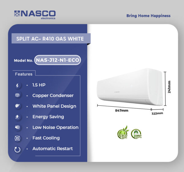 Nasco 1.5Hp R410 Split Air Condition White NAS-J12-N1-ECO