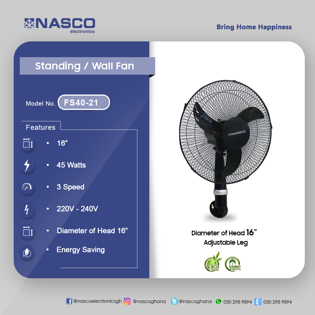 Nasco 16 Inches 45 Watts Wall Fan Fs40 21 3 IN 1 45W 3SPEEDS 220-240V / 50-6HZ