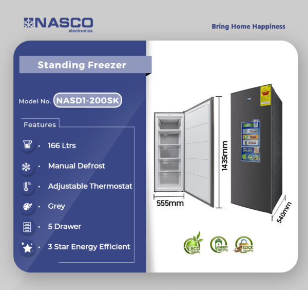 Nasco 166Ltrs Standing Freezer NASD1-200SK