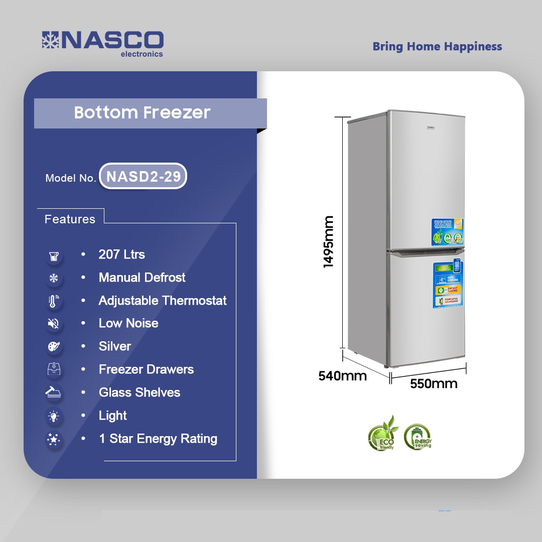Nasco 207ltr Bottom Freezer Refrigerator Nasd2 29 is now available in our store. Check out the details below!