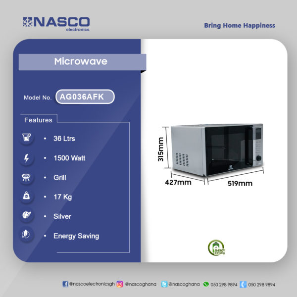 Nasco 36ltr Grill Microwave Ag036afk is now available in our store. Check out the details below!