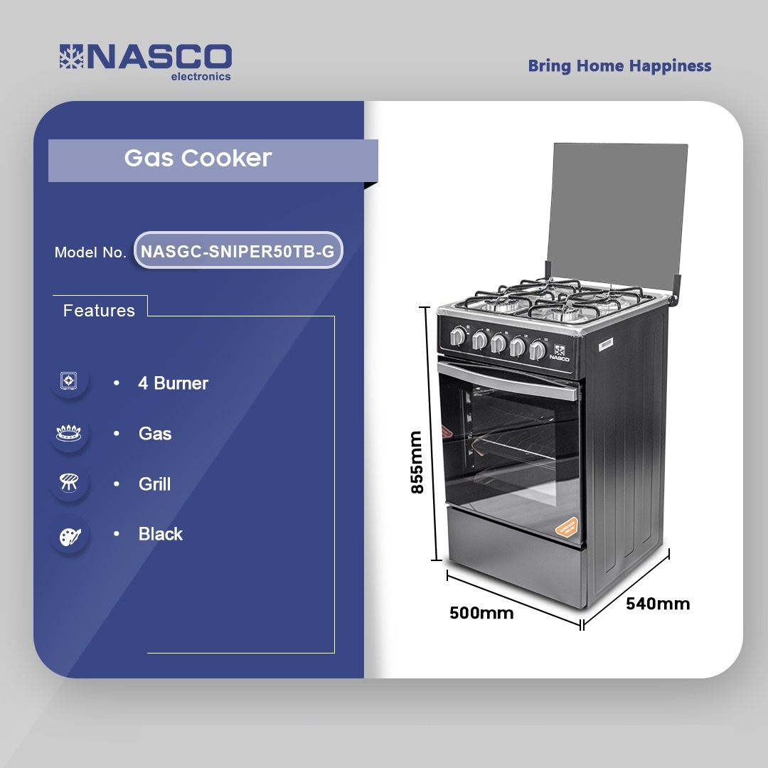 Nasco 4 Burner Gas Cooker with Grill – Efficient Cooking in Ghana Fast & Even Cooking with 4 High-Performance Burners The Nasco 4 Burner Gas Cooker is designed for both convenience and efficiency. Featuring four high-powered gas burners, this cooker ensures even heat distribution for perfect cooking results. Whether you’re preparing a quick breakfast, a hearty Ghanaian stew, or a full-course meal, this stove makes cooking effortless and enjoyable. Spacious Oven with Integrated Grill With a 50 x 50 cm compact design, this gas cooker is perfect for any kitchen, offering ample cooking space while saving room. The built-in grill … Nasco 4 Burner Gas Cooker With Grill Nasgc Sniper50tb G is now available in our store. Check out the details below! Buy now on Ololo Express