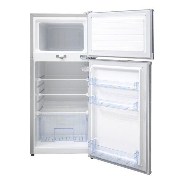 The Nasco 95Ltrs Double Door Top Freezer delivers reliable cooling in a sleek Silver VCM finish that enhances any kitchen or workspace. Designed for smaller households, offices, and shops, it offers a perfect balance between size and storage capacity. The double door design allows easy access to fresh and frozen foods while keeping everything organized and within reach.