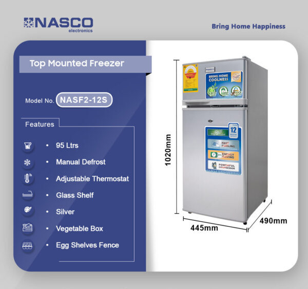 Nasco 95ltr Double Door Top Freezer Nasf2-12s