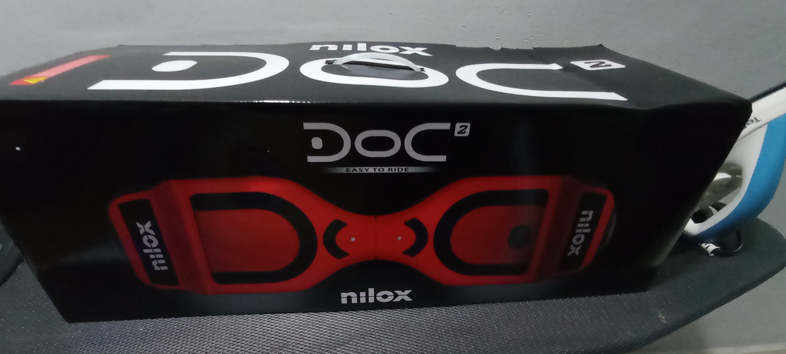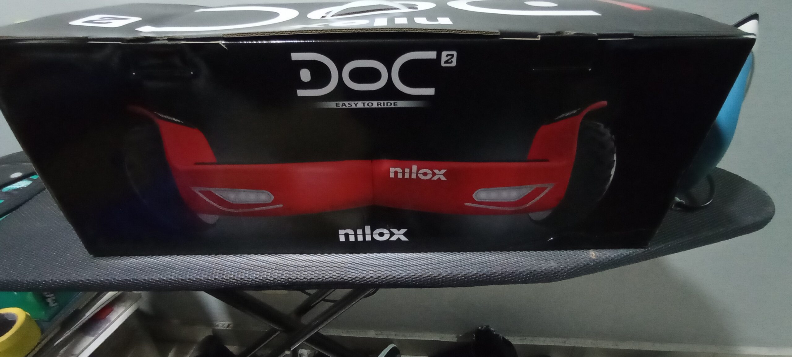 This is a Nilox DOC 2 hoverboard in red and white.