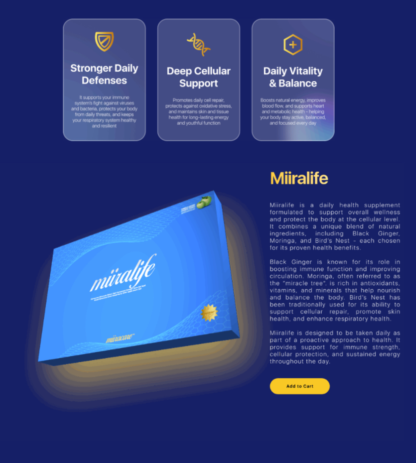 - Supports Cellular Health: By nourishing your cells from within, Miiralife helps maintain healthy cell function and promotes cellular repair. This is essential for overall health and longevity.