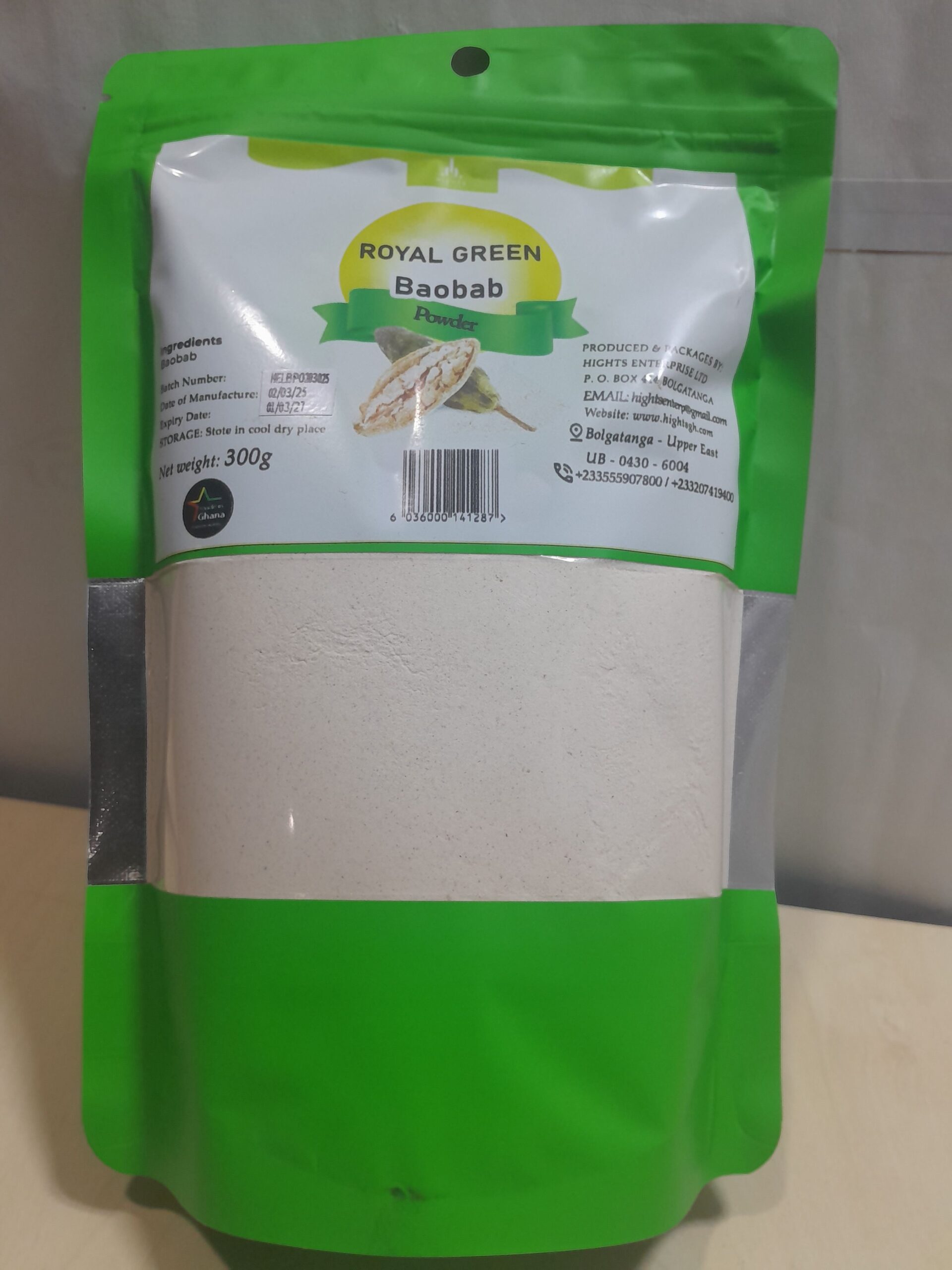 Royal Green Baobab Powder 150g– Nutrient-Rich Superfood Experience the Power of Baobab – The Tree of Life! Royal Green Baobab Powder is made from the fruit of the baobab tree (Adansonia), a nutrient-dense superfood known for its rich vitamin and mineral content. With a naturally tangy, citrus-like flavor, this organic powder is a versatile addition to your daily diet and wellness routine. Why Choose Royal Green Baobab Powder? Rich in Vitamin C – Boosts immune health, enhances collagen production, and supports glowing skin. High in Fiber – Promotes digestive health, aids gut function, and helps regulate blood sugar. Powerful Antioxidants