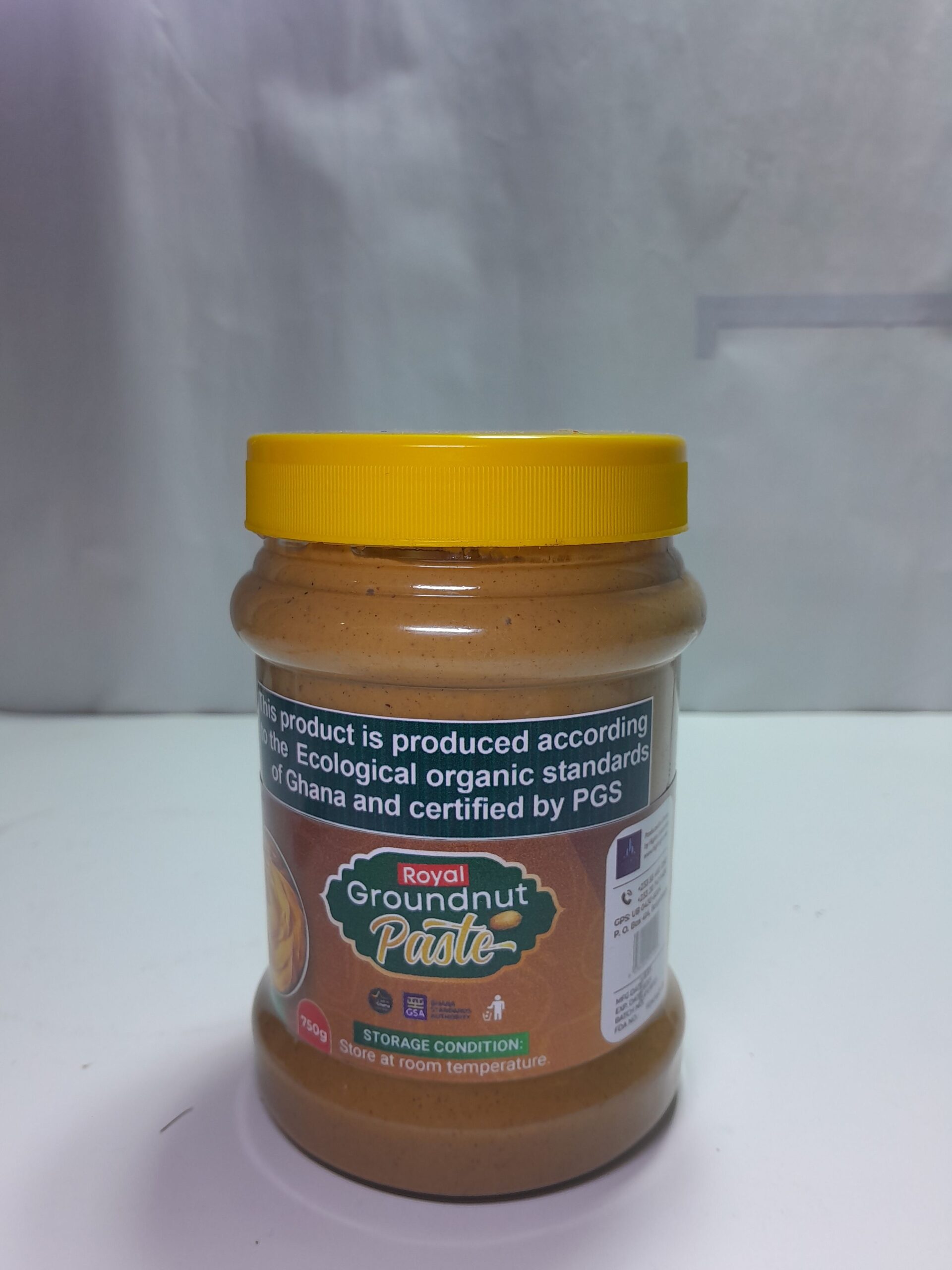 Royal Groundnut Paste 750g is here to bring you the best in quality and taste! This product is produced according to the ecological organic standards of Ghana and certified by Participatory Guarantee System (PGS) 100% Natural – No additives or preservatives Rich in Protein – Perfect for a healthy lifestyle Smooth & Creamy – Ideal for soups, stews, and spreads Deliciously Nutty – Adds flavor to every meal. Health Benefits of Royal Groundnut Paste Rich in Protein – Supports muscle growth and repair. Heart-Healthy Fats – Contains good fats that help lower bad cholesterol. Boosts Energy – A great source