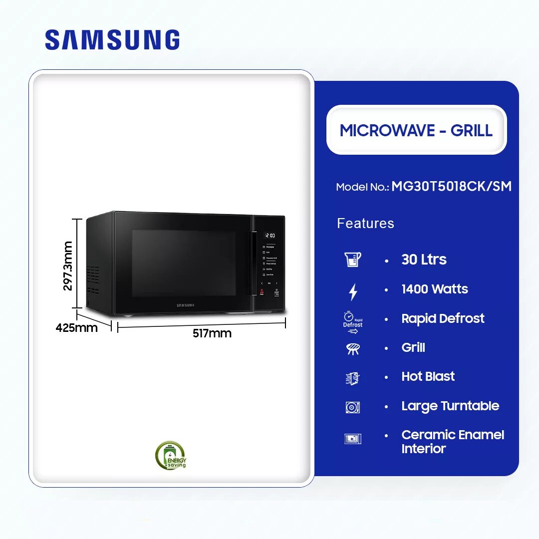 Samsung 30ltr Grill Microwave Mg30t5018ck/Sm is now available in our store. Check out the details below!