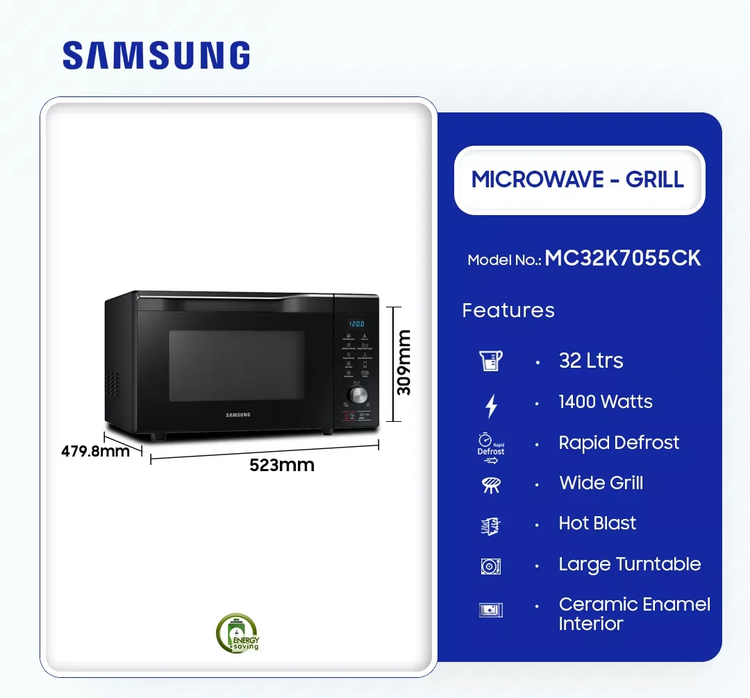 Samsung 32ltr Grill Microwave Mc32k7055ck is now available in our store. Check out the details below!