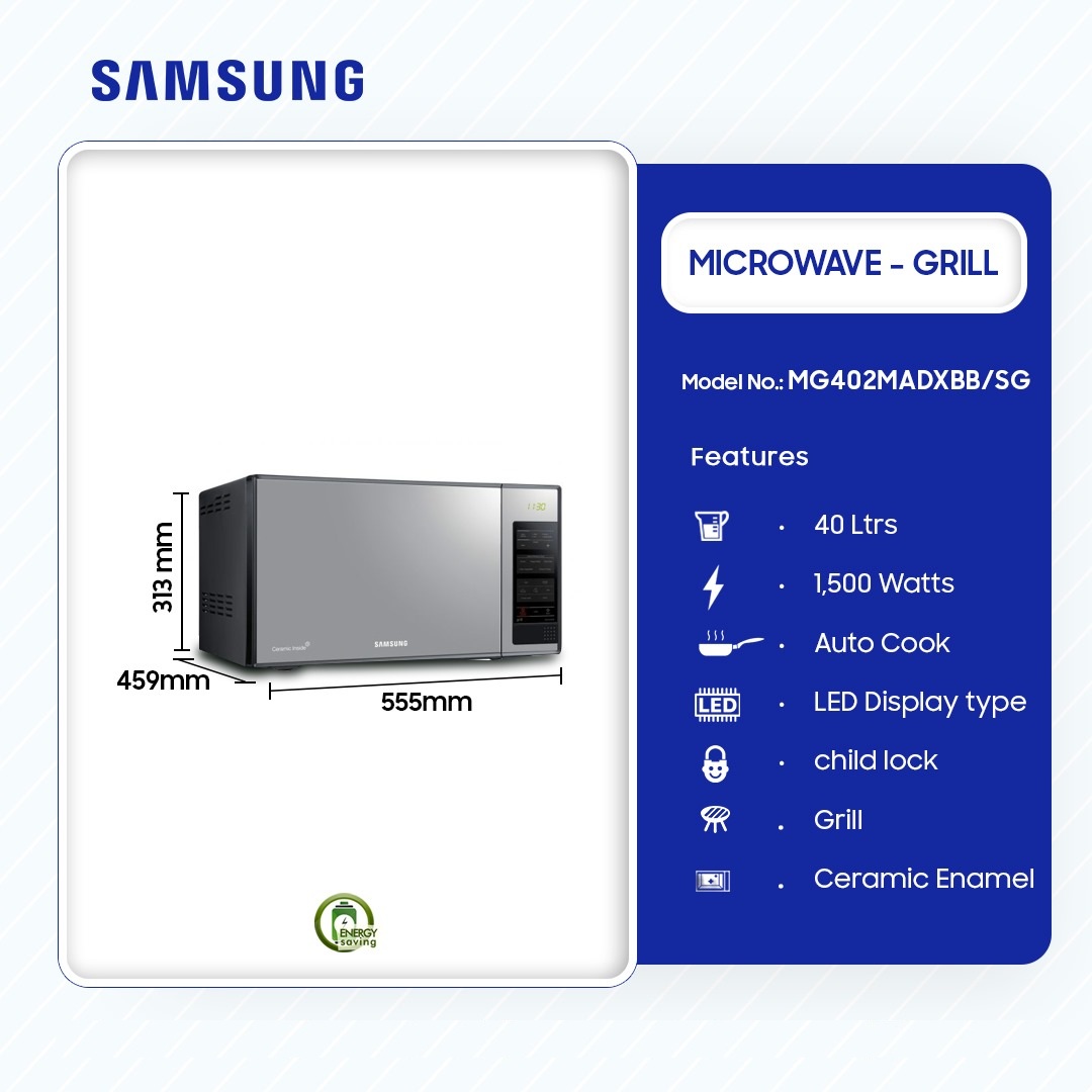 Samsung 40 Ltr Grill Microwave Mg402madxbb Sg is now available in our store. Check out the details below!