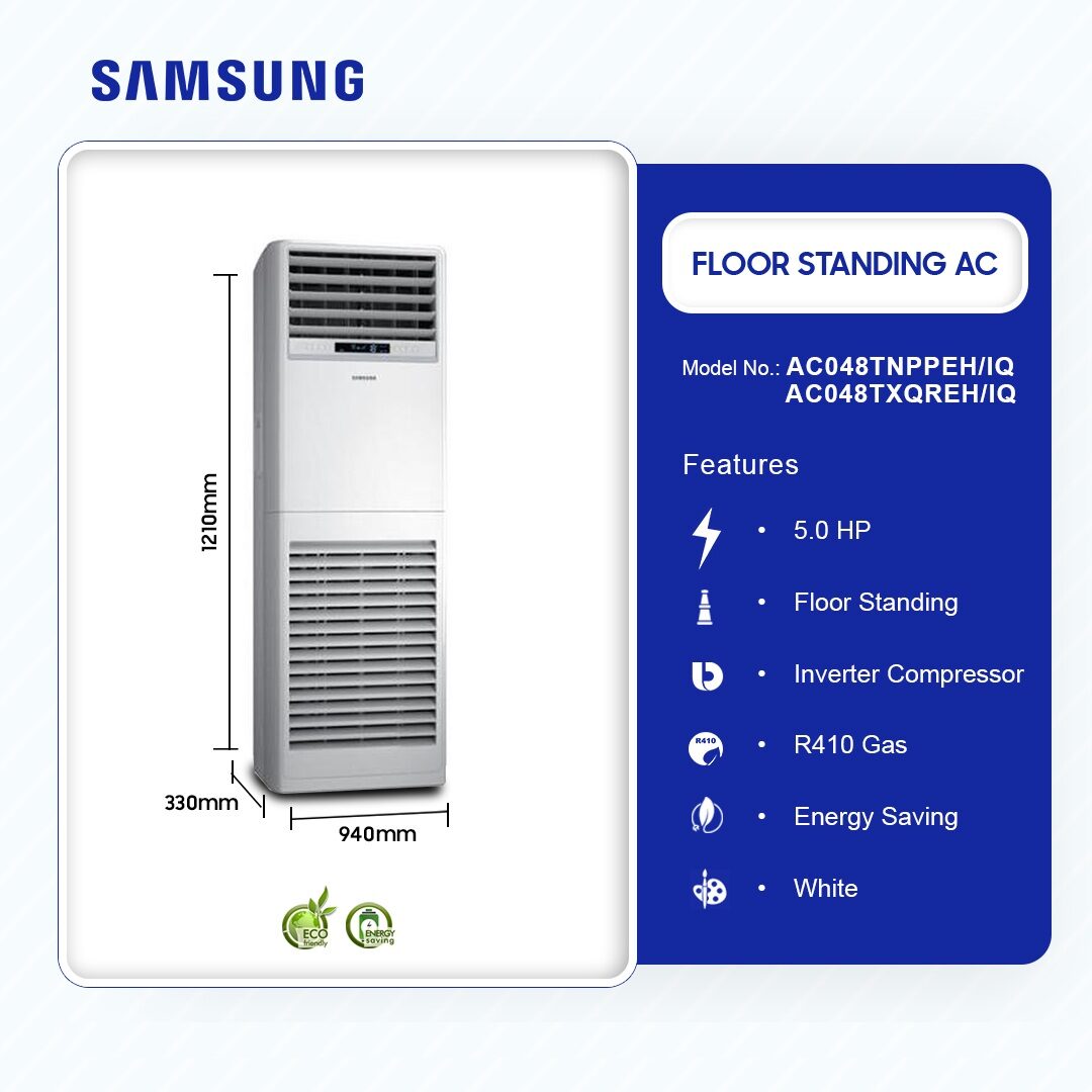 Samsung 5.0 Hp Floor Standing Ac With R410 Gas Ac048tnppeh/Ac048txqreh is now available in our store. Check out the details below!