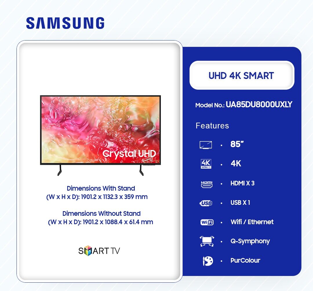 Samsung Uhd Smart 4k 85 Inch Television Ua85du8000uxly is now available in our store. Check out the details below!
