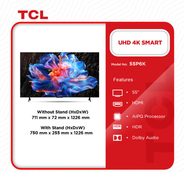Feel every beat, whisper, and explosion with Dolby Atmos audio. This advanced sound technology creates a 3D soundscape that surrounds you from every direction. Whether you’re streaming a blockbuster, gaming, or listening to music, the TCL 55″ Smart TV transforms your space into a personal theatre. Clear vocals, dynamic bass, and immersive sound effects make every viewing unforgettable.