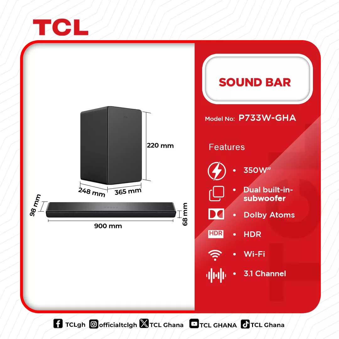 Tcl Audio Sound Bar 350w P733w Gha in Ghana is now available in our store. Check out the details below!