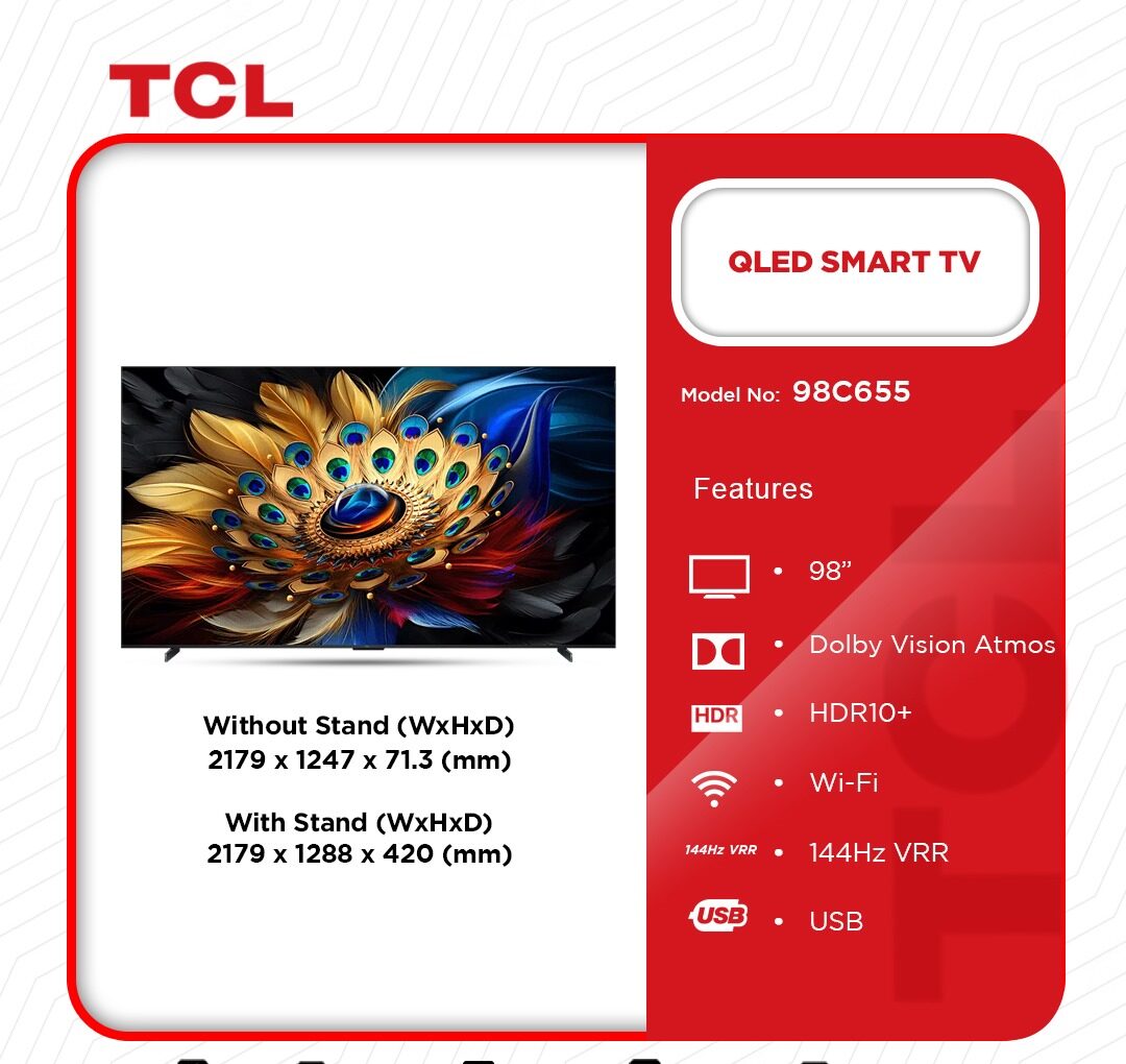 Tcl Qled 4k Smart Android Tv 98 Inches 98c655 in Ghana – Immersive 98-inch Display for Cinematic Experiences Step into a world of expansive, ultra-clear visuals with the TCL QLED 4K Smart Android TV. The 98-inch screen provides a larger-than-life viewing experience, perfect for movie lovers, sports enthusiasts, or gamers looking for an immersive display. With QLED PRO technology, every image pops with vibrant colors and crystal-clear detail, creating a lifelike experience that draws you into the action. Whether it’s the latest blockbuster or your favorite show, the enhanced brightness and contrast make every moment unforgettable. The 512 Local Dimming … Tcl Qled 4k Smart Android Tv 98 Inches 98c655 is now available in our store. Check out the details below! Buy now on Ololo Express