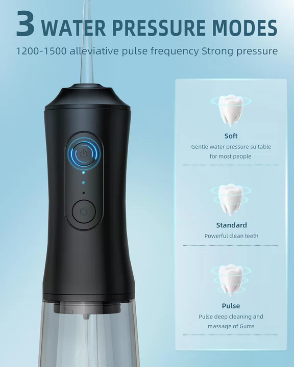 Upgrade your oral hygiene routine with this Cordless Water Flosser / Oral Irrigator, designed to deliver professional-level dental cleaning from the comfort of your home. Using advanced pulse technology, it removes plaque, food particles, and bacteria from areas traditional floss can’t reach leaving your teeth cleaner and gums healthier.